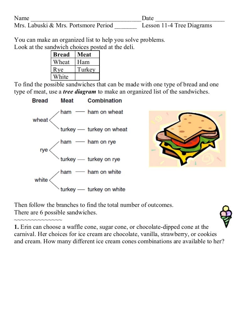 › compare-contrastCompare and Contrast Worksheets Main Idea Worksheets. S.T.W. also has worksheets for teaching students about main idea in reading and writing. Graphic Organizers. Download writing webs, t-charts, concept wheels, and more. Reading Comprehension Worksheets. We have hundreds of reading comprehension worksheets for all elementary grade levels. Venn Diagrams (Math) Probability Tree Diagram Worksheets Teaching Resources | TpT use these tree diagram worksheets to help students learn all the outcomes (combinations) for probability unit.what's included-*pizza toppings probability tree diagram*donut probability tree diagram*cupcake probability tree diagram*ice cream probability tree diagram*fidget spinner probability tree diagram*create your own tree diagramall worksheets … Probability Worksheets | Probability Tree Questions & Answers If you require probability tree diagram worksheets with answers or probability math questions and answers you can find them here at a very good value. So don't let your student become confused by probability, our probability activities are probably the best resources available. Daily Math Warm-Ups - Using a Tree Diagram for 5th Grade ... This math daily warm up worksheet for grades 4 to 6 features problem-solving strategies with math problems. For this daily warm-up, students will practice using tree diagrams. They will solve the problem, show their work in the work it out section, and then describe how they solved the problem. This worksheet can be used for 4th through 6th grade math lessons, independent study, or in groups.